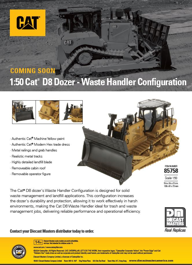 Bulldozer Cat D8 (configuration pour le traitement des déchets), série High Line, échelle 1:50, 85758