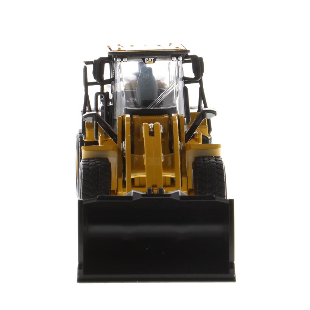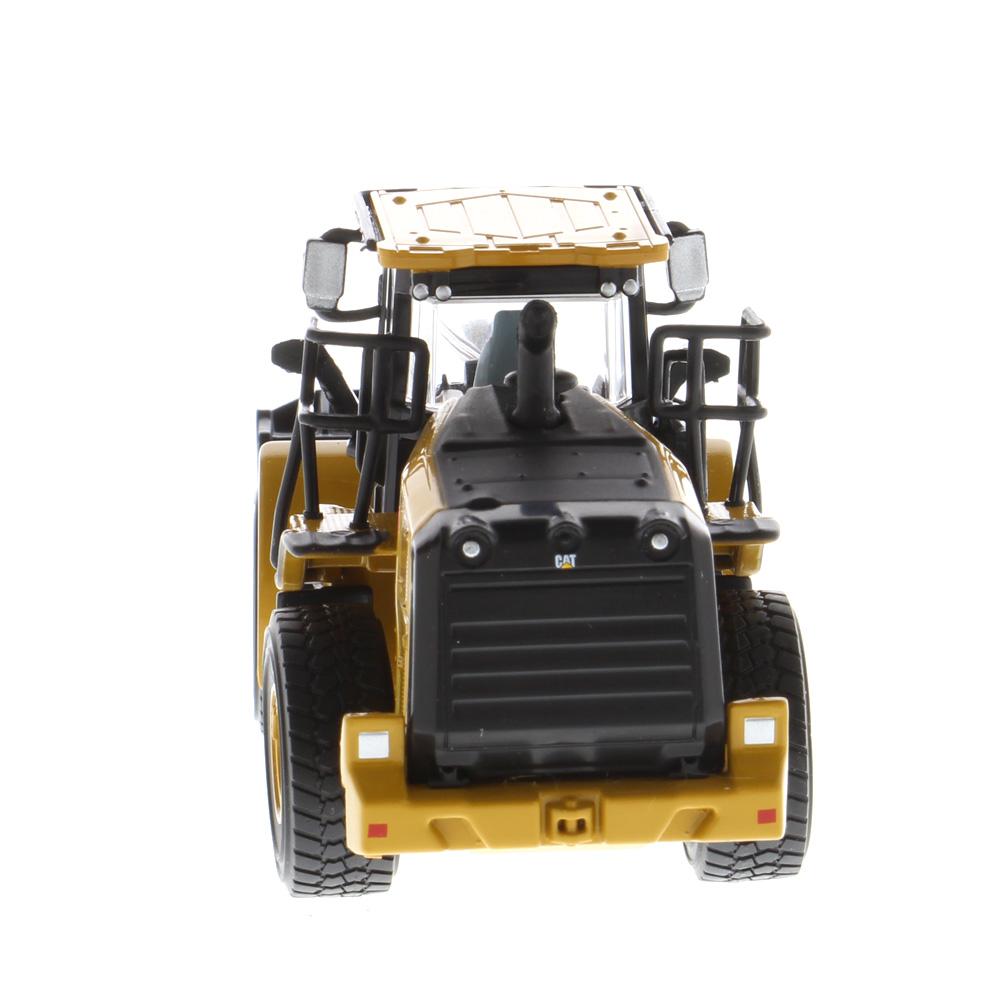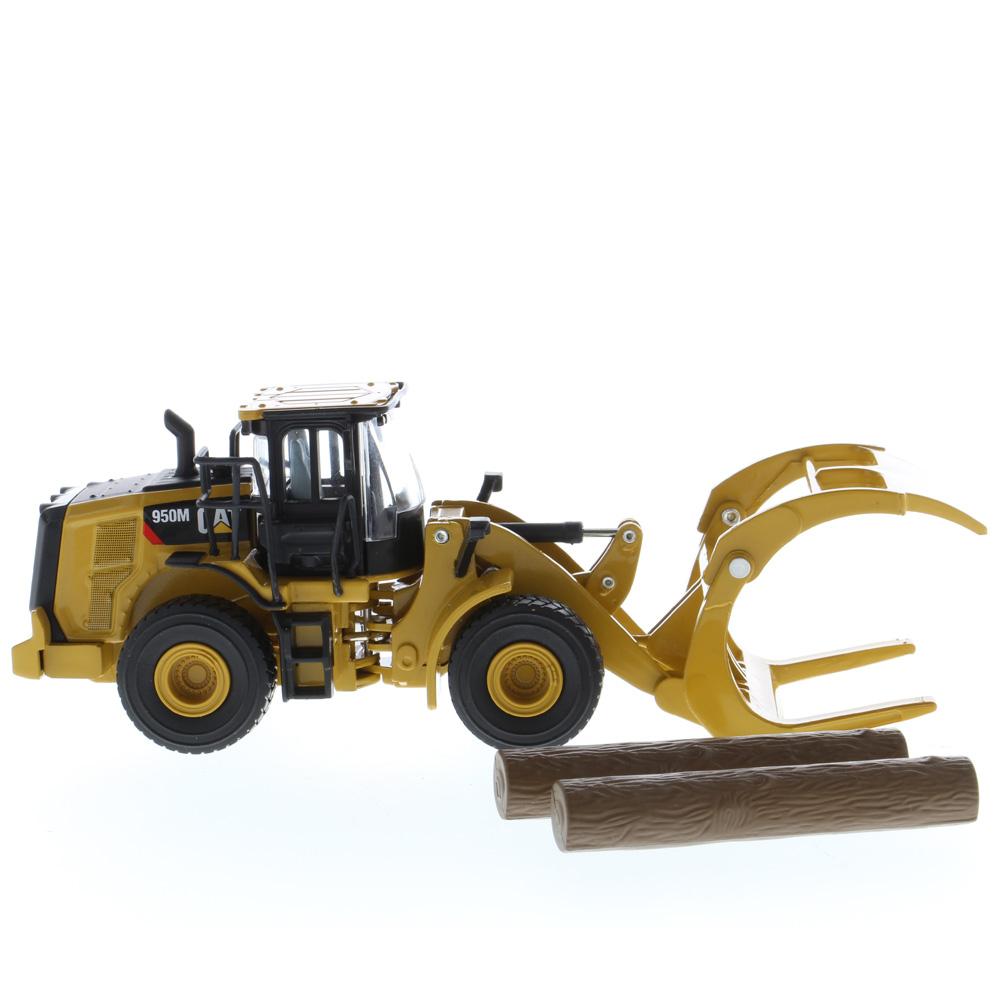 Chargeuse sur pneus Cat 950M 1:64 avec fourche à grumes et godet (livrée avec 2 perches à grumes), série Construction métallique, 85635