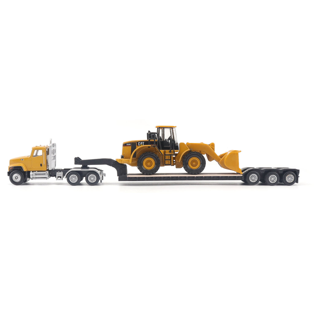 Tracteur Cat CT660 à cabine courte avec remorque surbaissée et niveleuse Cat 163H, échelle 1:87, 84414