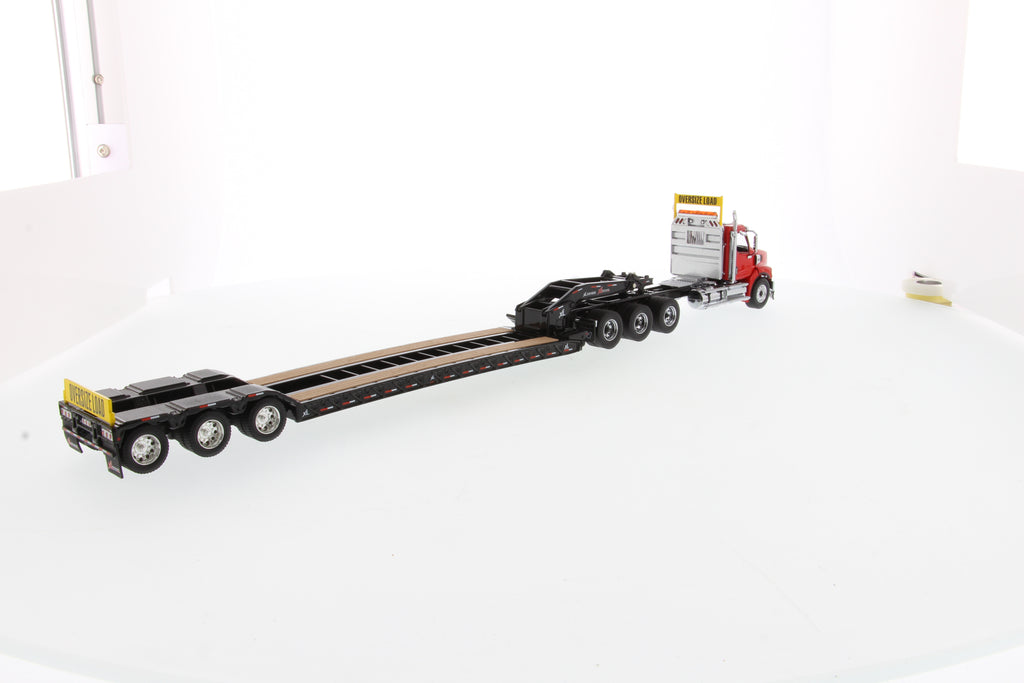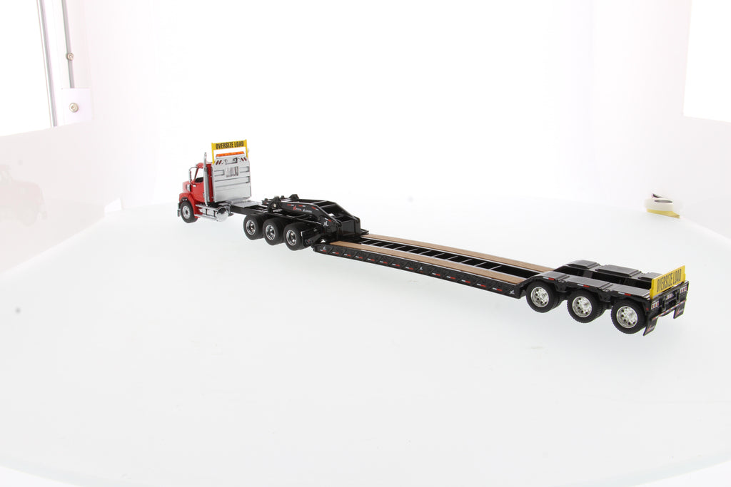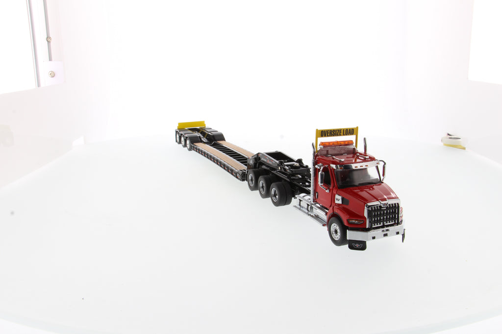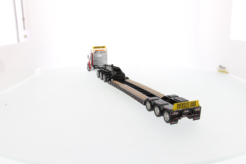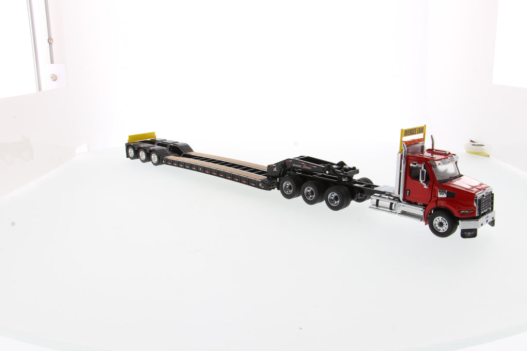 Tracteur lourd Western Star 49X SBFA Tridem à l'échelle 1:50 et remorque XL 120 HDG, avec 2 boosters - Cabine rouge + remorque noire, 71090