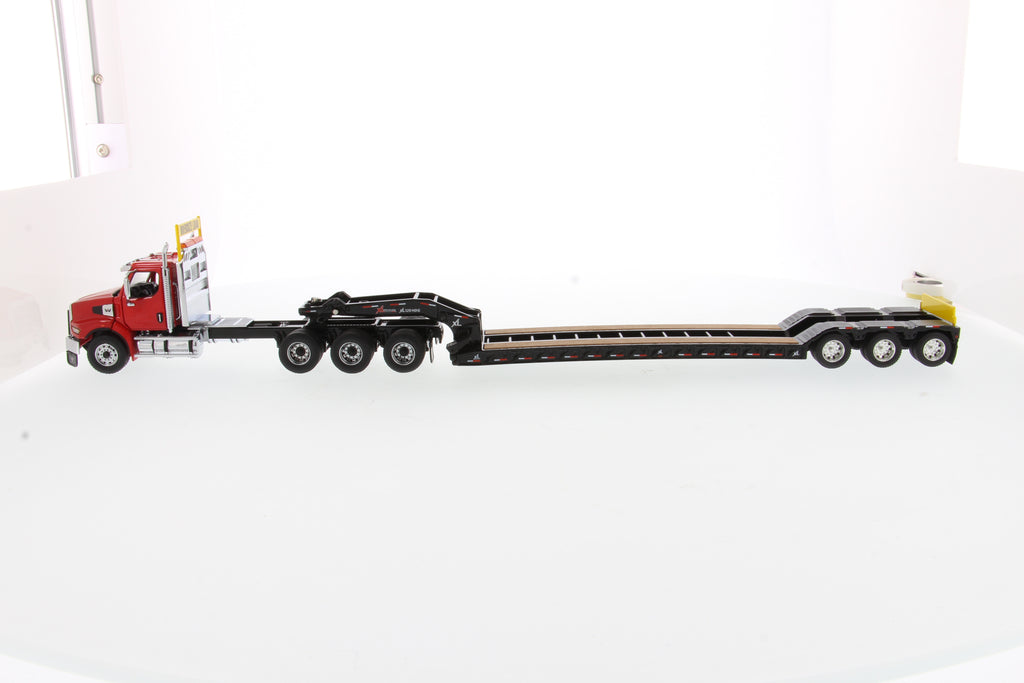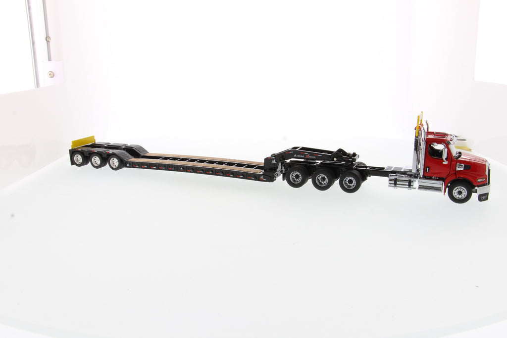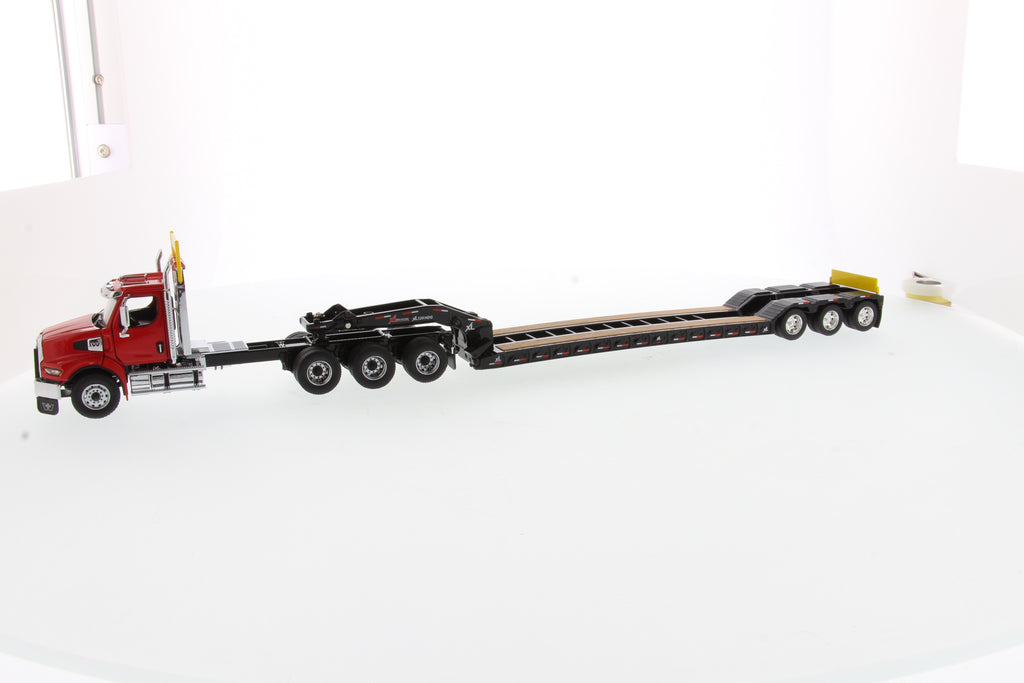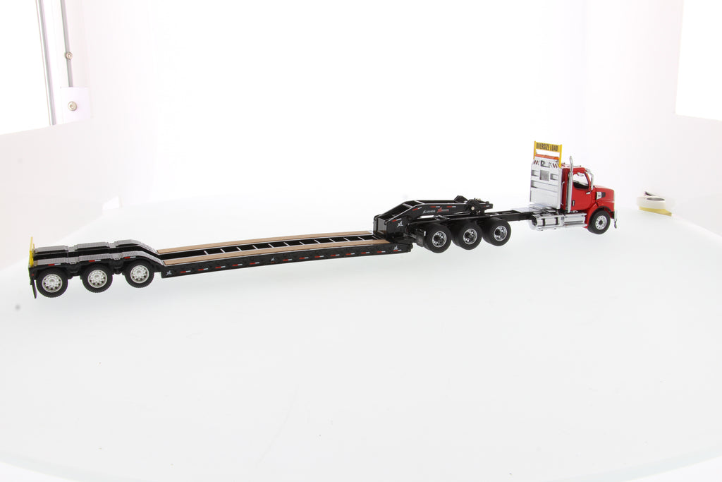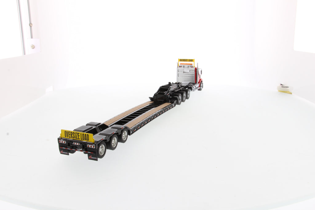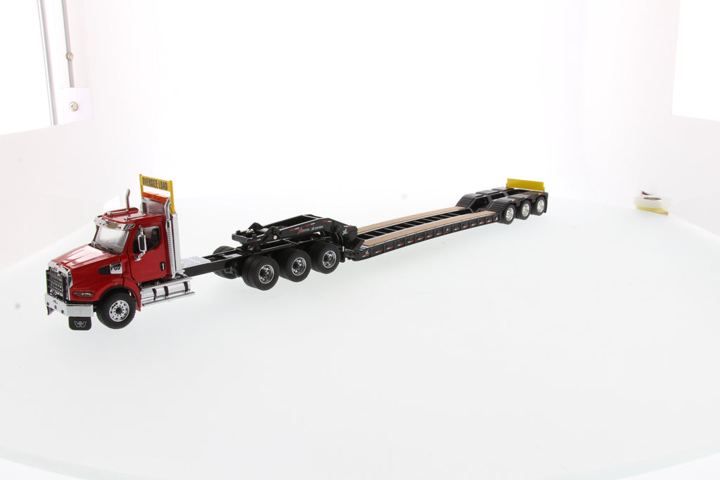 Tracteur lourd Western Star 49X SBFA Tridem à l'échelle 1:50 et remorque XL 120 HDG, avec 2 boosters - Cabine rouge + remorque noire, 71090